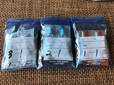 よく分からない注射を打たれ、薬をたくさんもらった。食後に飲むらしいが、包装されているにも関わらず匂いがキツイ。今ココでは保険が効かないので950000ルピアをクレジットカードで支払い、帰国後に請求する。