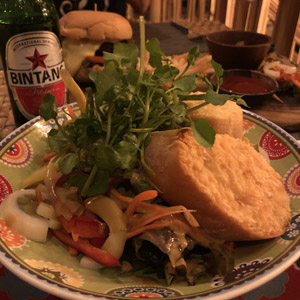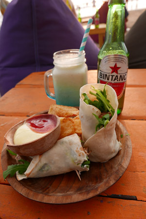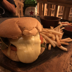 ビンタンビール、ピナコラータ(ノンアルコール)、チーズバーガー、サラダを注文して合計259000ルピア。