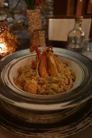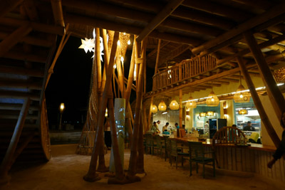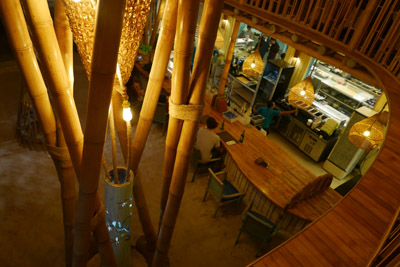 竹で作られたこのレストランは、柔らかい灯りに照らされて気分は心地良い。