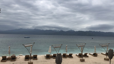 食事をしながら「海の波も高いし、コモドツアーは無理かなぁ」と思いはじめてきた。この波や風の強さはキューバのカヨ・ラルゴ島を思いだす。