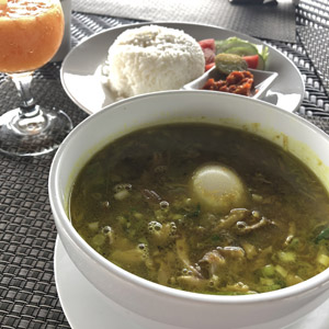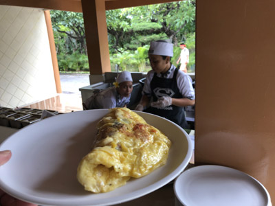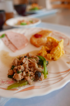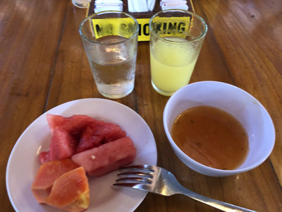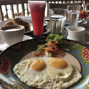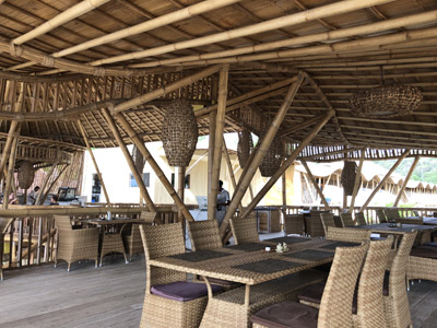 いつものようにホテルのバンブーレストランで朝食だ。エアコンなんてなくても自然の風が心地よい。