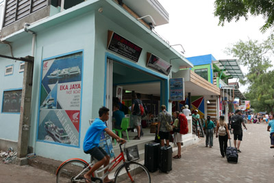 「EKA JAYA」のチェックインオフィスに到着。なにか外国人がすごい剣幕で受付の人と揉めている。受付のインドネシアの人は丁寧に説明しているのに西洋人が感情的に怒っている。チケットが取れてなかったのかな?