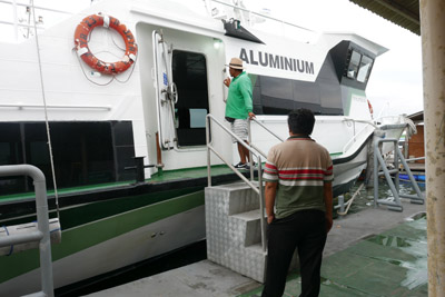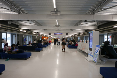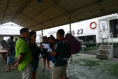 「セランガン(SERANGAN)港」行きのタグを荷物に貼られる。セランガン港行きの人は少ないみたいだ。