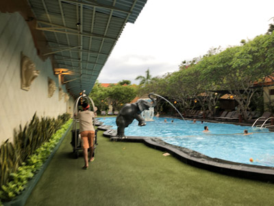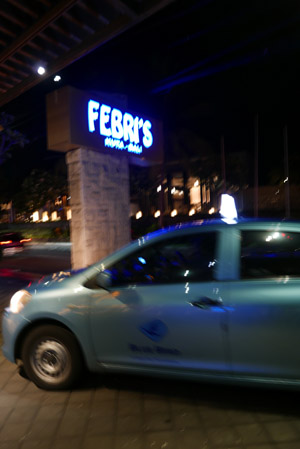 地元のスーパーに行ってみたが、ボクはまだ体調があまり良くなかったので外で座って待っていた。嫁ちゃんの買い物が終わってホテルまでタクシーで帰ることにした。バリはインチキタクシーも多いらしく、「ブルーバード」と書いてあるメーター式の車に乗る。似たような感じに似せたニセモノもいるので気をつけないと。ホテルまで8300ルピアで超安かった。