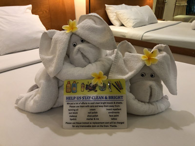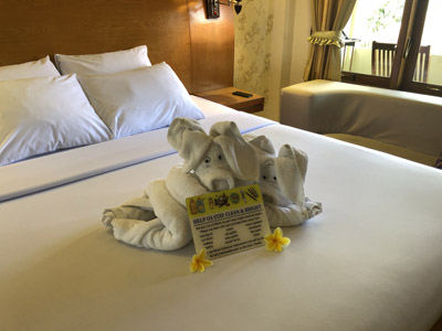 なんと、部屋が空いていたので早めに入ることができた。ラッキー!そして相変わらずのタオルアート!