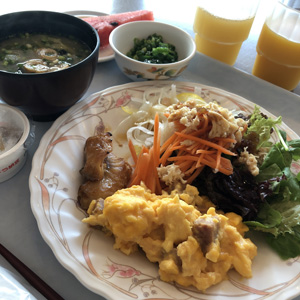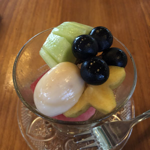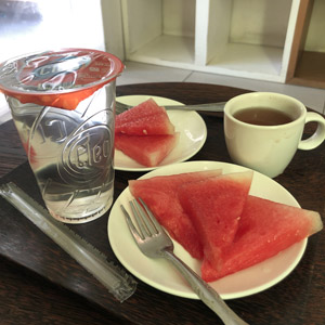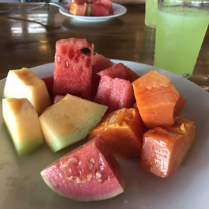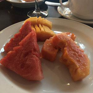 9時過ぎにホテルの朝食。今日は果物をメインにした。そのあと昼過ぎまで部屋で休憩。