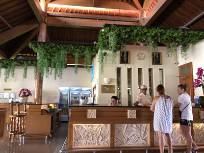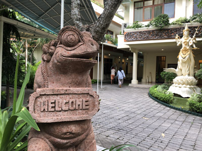 18時には今回の旅で定宿となった「Febri's Hotel & Spa」ホテルに到着。バリの市街地からだと「パダンバイ」より「セランガン」の方が楽チンだと思う。ウェルカムデザートを食べながらチェックイン。