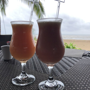ボクたちもビンタンビールを飲みながらくつろぐ。波風が気持ちいい。
