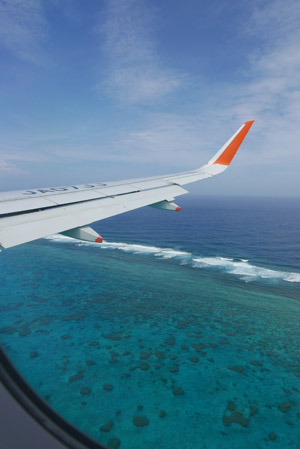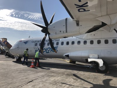 7:45にデンパサール国際空港(DPS)を離陸。ATR72-600という小型のプロペラ旅客機だ。