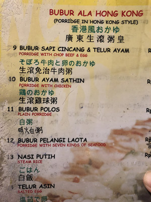 まだ体調が回復していないので、夕飯は嫁ちゃんが買いに行ってくれた。オススメのお粥屋があるらしくタクシーで1人で行って、店のメニューをLINEで送ってくれた。