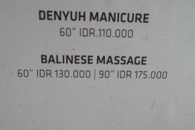 洗濯物を昨日預けたランドリーに衣類を受け取りに行った。とても暑かったので近くのショッピングセンターの店でマンゴースムージーを飲む。350000ルピア。ホテルまで歩くと汗だくになったので部屋でシャワーを浴びて着替えた。
