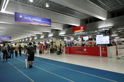 到着ロビーに出てタクシー乗り場に向かう。その間にタクシーの客引きがたくさん寄って来るので交渉する。