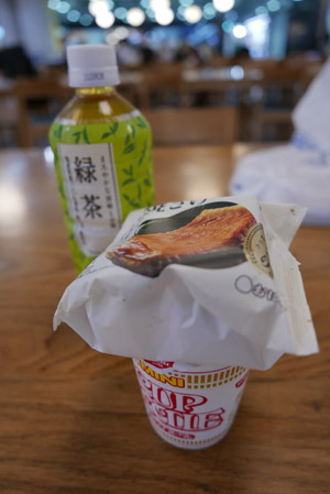 昼頃に起き上がり、中庭のテーブルでランチにした。嫁ちゃんが屋台で買って来てくれたナシチャンプル(15000ルピア)と大晦日に食べようと日本から持って来ておいたカップの年越しそばを食べた。