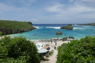奥には昨日と同じく岩の向こうに穴が空いてブルーが綺麗だ。