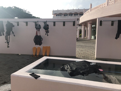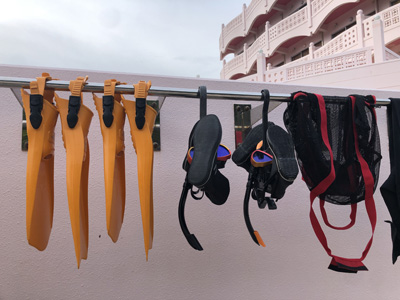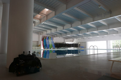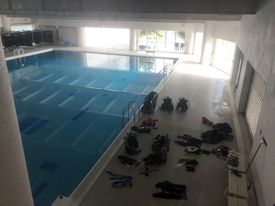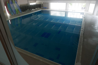 部屋に戻るときにプールを覗くと機材が準備されていた。今日は誰かプール講習をするのかな?