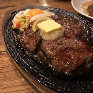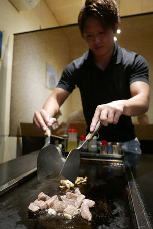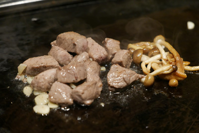 まずは宮古牛の鉄板焼き。お兄さんが焼いてくれる。美味しい。