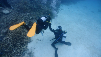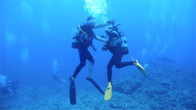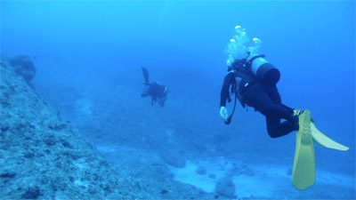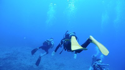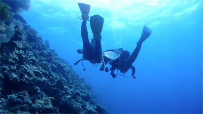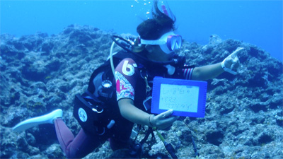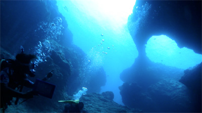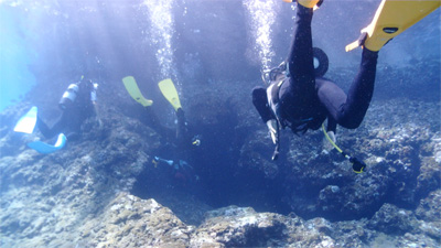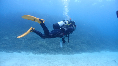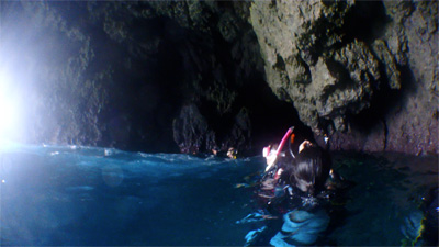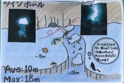 マレアでの講習は今日で終わりだけれども、せっかく宮古島に来たのだから「八重干瀬(やびじ)」にはぜひ潜ってみたい。マレアだとなかなか八重干瀬のエリアには行かないそうなので、観光案内のガイドブックに載っている池間島のダイビングショップに片っ端から電話をして明日のファンダイブを予約した。これまた有名な「パンプキンホール」とよばれる鍾乳洞ツアーにも別途申し込んだ。