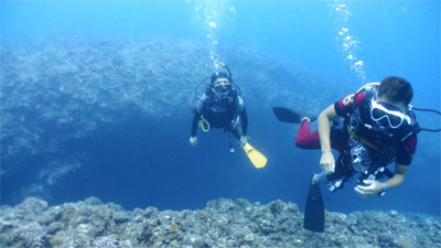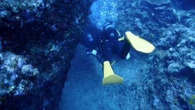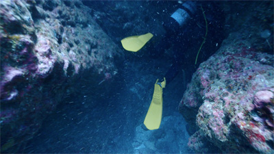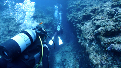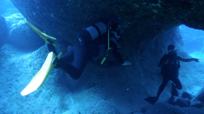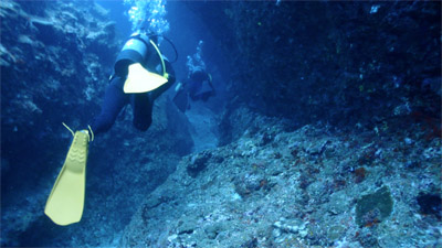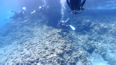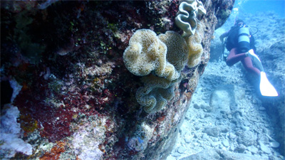 海中で水中カメラ(TG-Tracker)の調子が悪くなったので撮れているのはこれだけ・・・写真がないけれども結構大きくオーバーハングしていて迫力があった。