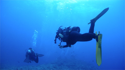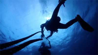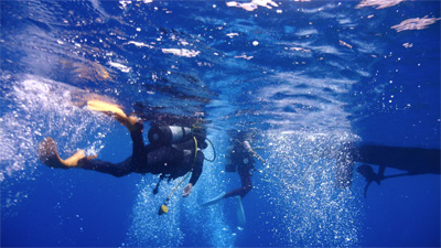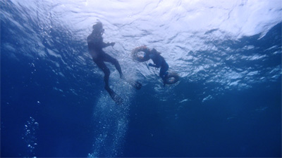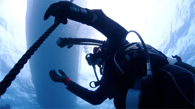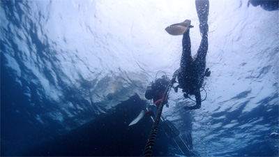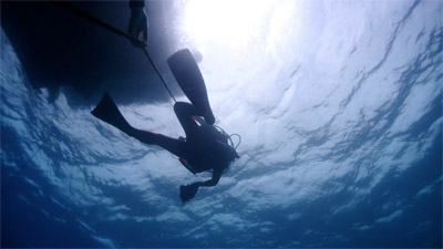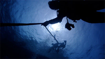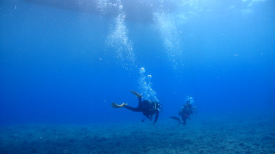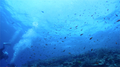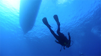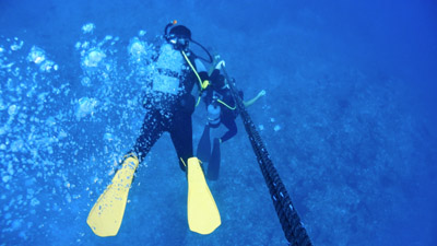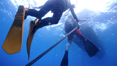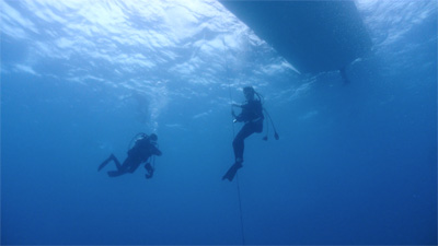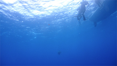 ボクはこの安全停止の時間が好きだ。海底を見ず、広い海面を見ながらロープを持っているとゆらゆらとして気持ち良い。