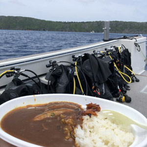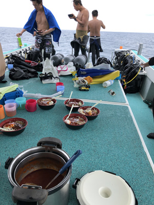 安全停止が終わってエグジットし、船上でランチだ。この時間も好き。