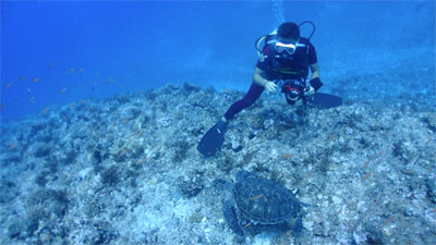 ちょっと遠くにウミガメが浮上してきたのが見えた。
