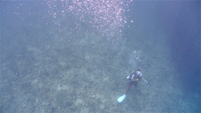 そろそろ時間になってきたので安全停止。すぐソコに海底が見える(笑)。