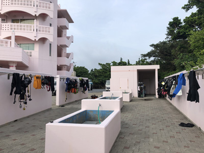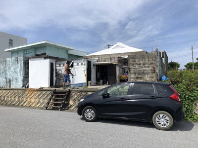 港の側の「池間食堂」前に集合してファンダイブの手続きをする。ショップは「池間島ダイビングサービス」を利用する。