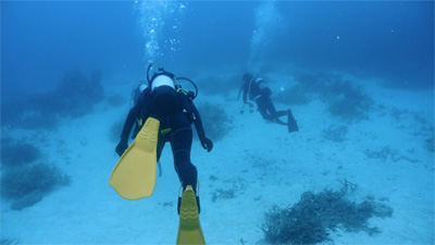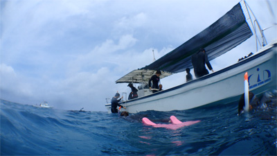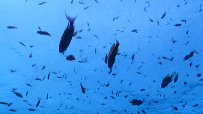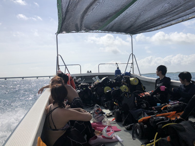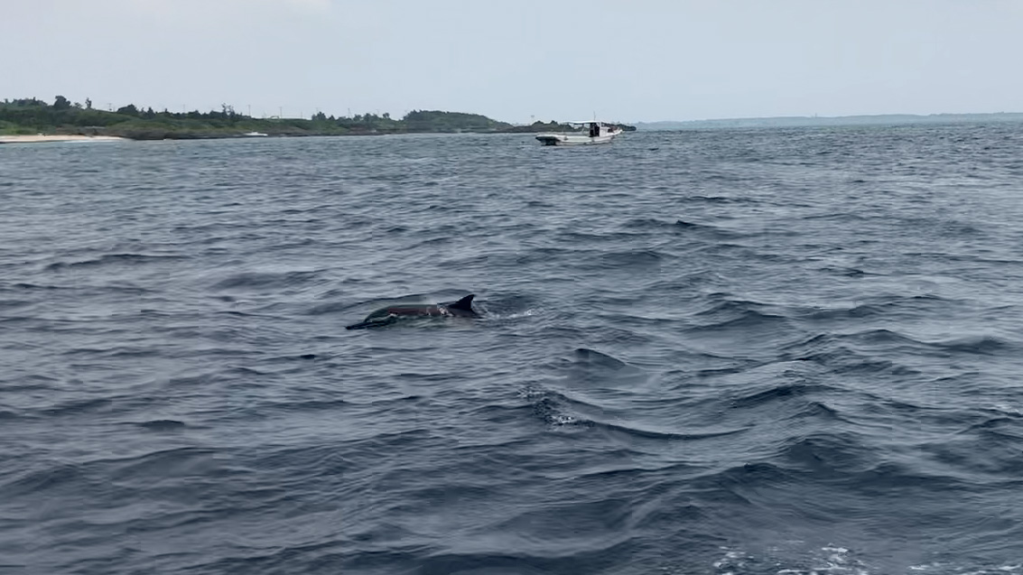 3本潜り終わって港に帰る途中、イルカに出くわした。泳ぐのが速くてゆっくり見れなかったけれども大好きなイルカに遭遇できたのはラッキーだった。
