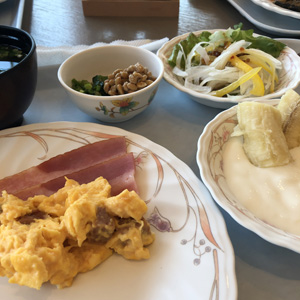 嫁ちゃんは朝ごはんをちゃんと食べていたが、ボクは果物を少しだけ。