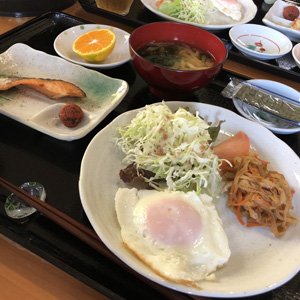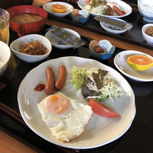8時に「なかた荘」の朝ご飯。
