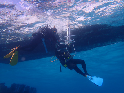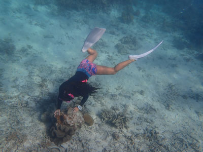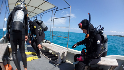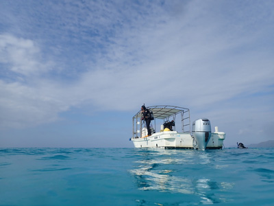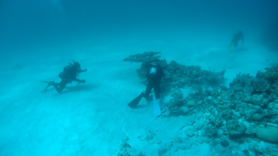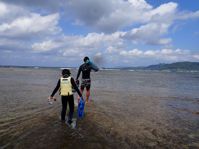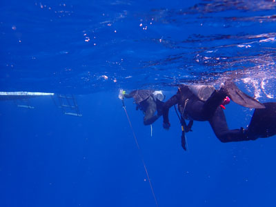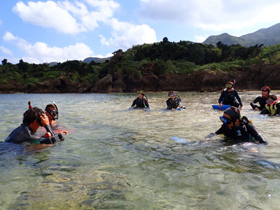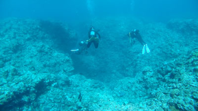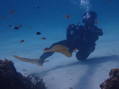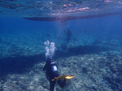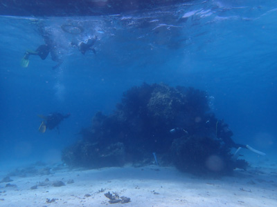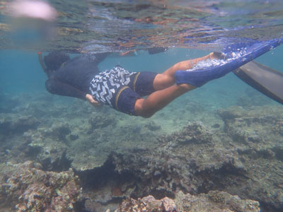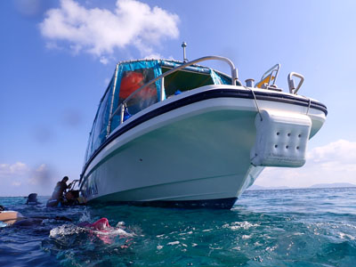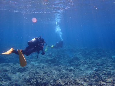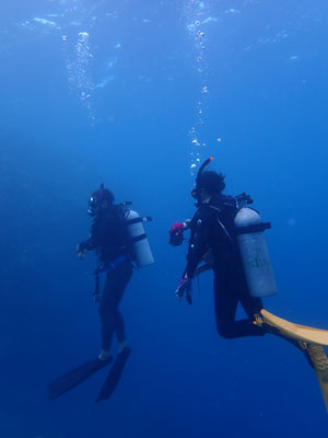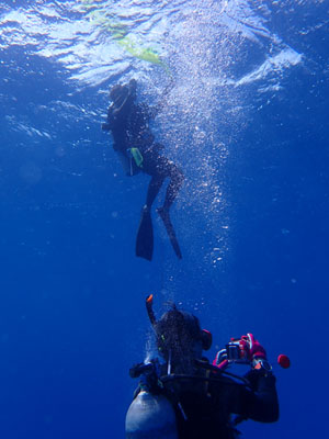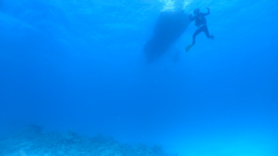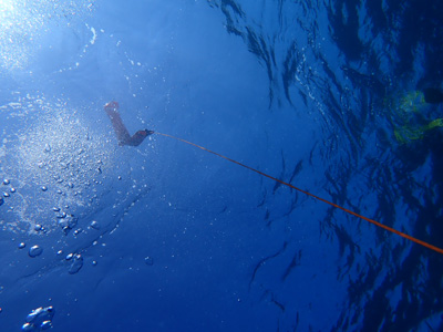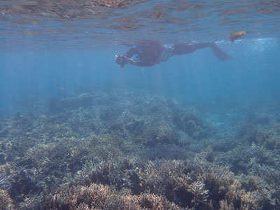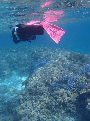 エアの残りにまだ余裕があった嫁ちゃんとガイドさん、他のお客さんはもう少し潜っていたのでボクは今度はシュノーケルでドボンした。