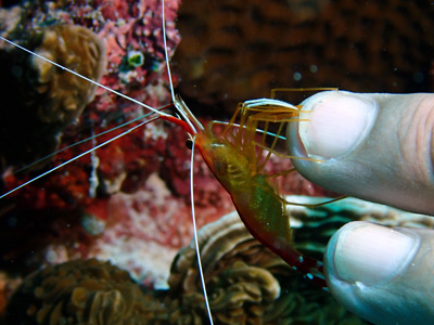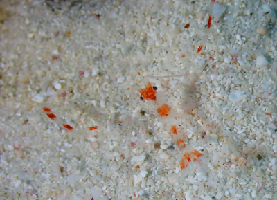 アカシマシラヒゲエビという名前だそうだ。名前のまんまやな。