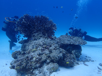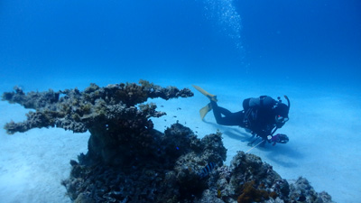 ダイビングポイントというよりはシュノーケリングポイントという感じかな(笑)。浅いので空気の消費量が少ないためこの水族館的な景色を長時間眺めることができる。