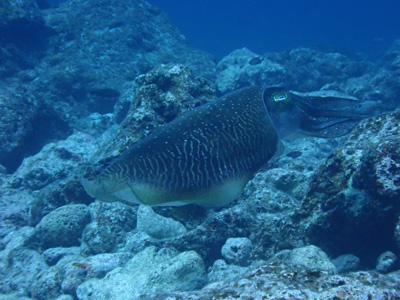 洞窟から少し移動するとコブシメもいた。初めて生で見たけれども大きいな。