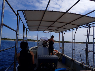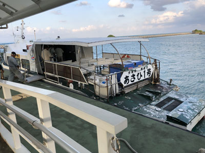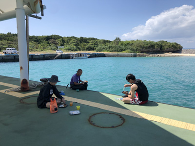 港に行き、船に乗り込み出発だ。今日はボクたち含めてお客さんが3人だけなので小さな船だ。