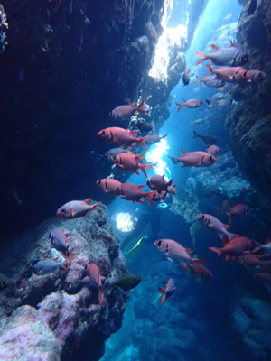 水深が浅く最大でも5mくらいしかないのでまるで水族館の水槽で泳いでいるようだ。