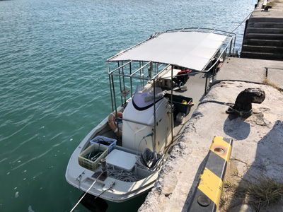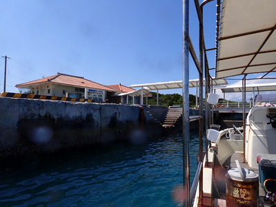 上地島の桟橋にボートを停泊して上陸。