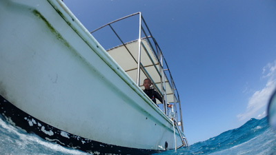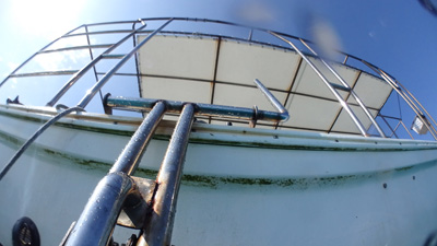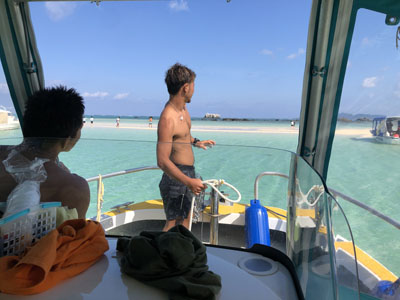 今日のダイビングは2本で終わり。内海のロックアイランドの浅瀬に停泊してランチ。今回初めて体験したのだが、パラオではトイレに行きたくなったらボートのラダーを降ろしてそこに掴まって用を足すのだ。
