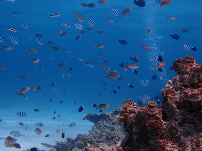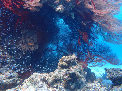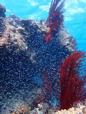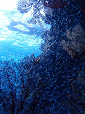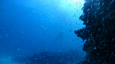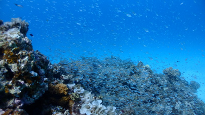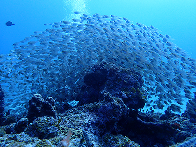 何か分からないけれども魚の群れ。軽いドリフトダイブなのであまり泳がずに楽チン。
