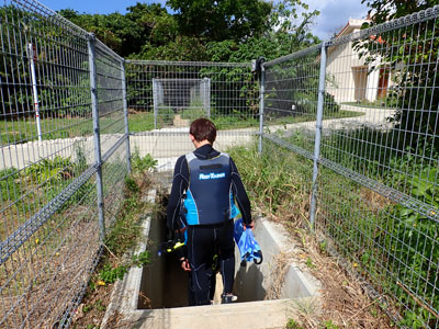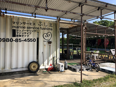 ショップでウェットスーツに着替える。今回利用したショップは黒島の「マリンサービスふしま」さん。