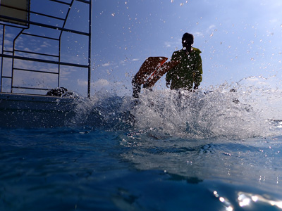 今度行くパラオではフロートの携帯が必須なので、石垣島に来る前に買ってきたフロートをココで練習であげさせてもらった。一度自分でやっておくと少し安心。