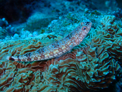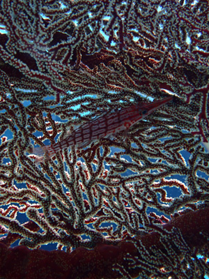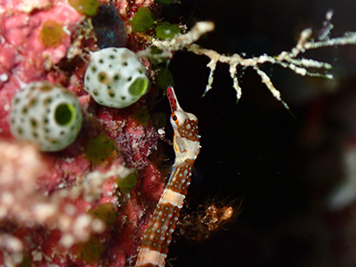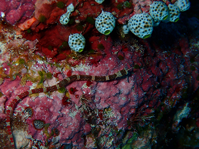 クダゴンベ。擬態しているね。クダゴンベは水深30mくらいにしかいない魚だそうで、こんな浅い場所で見られるのは珍しいんだって。