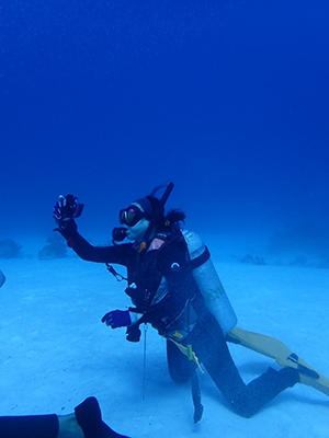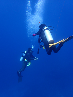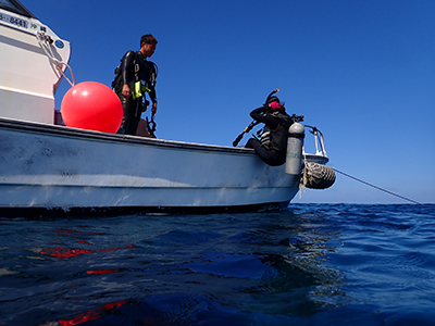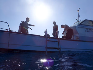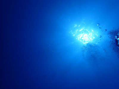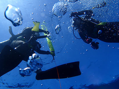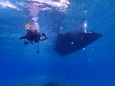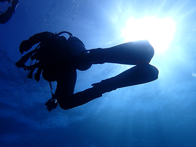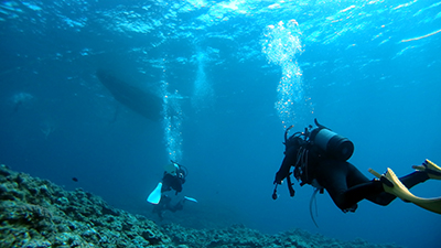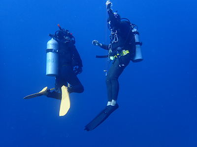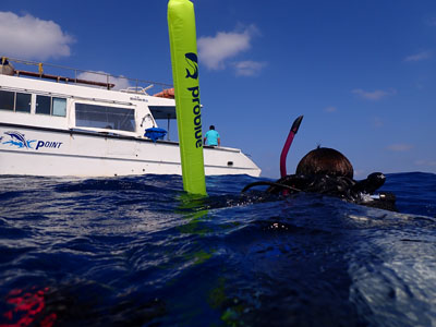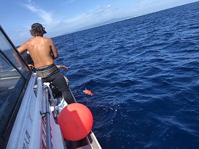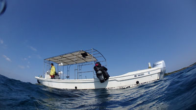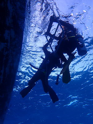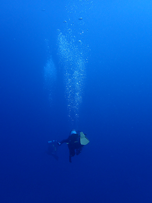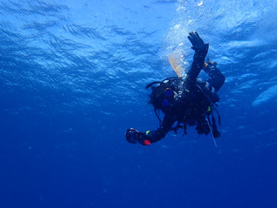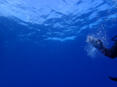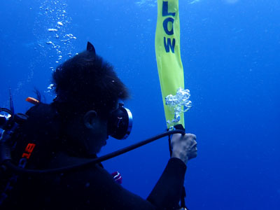 フロートを上げて5mの水深で3分間の安全停止。そして海面浮上。