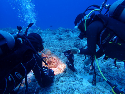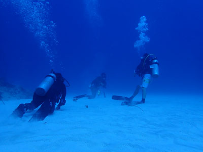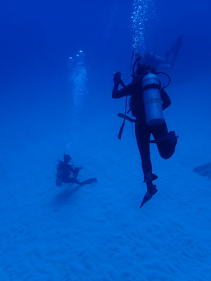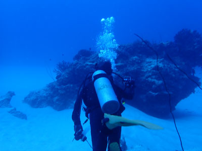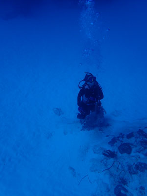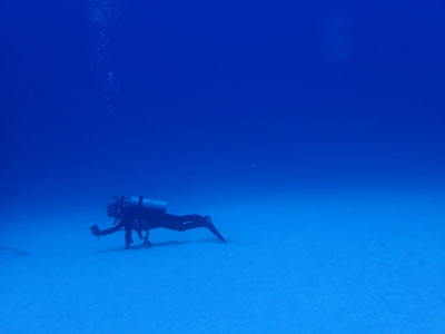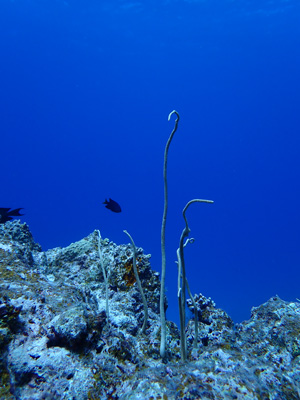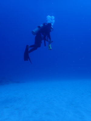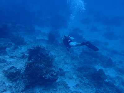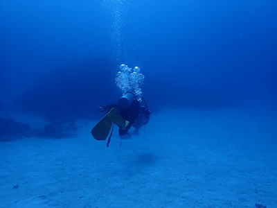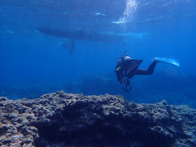 今日はナイトロックスでエントリー。少し潜ったがレギュレーターがうまく吸えない。息を吸おうとすると「スッスー、スッスー」となってしまい連続して吸えない。一旦浮上して他のレギュレーターに交換してもらった。