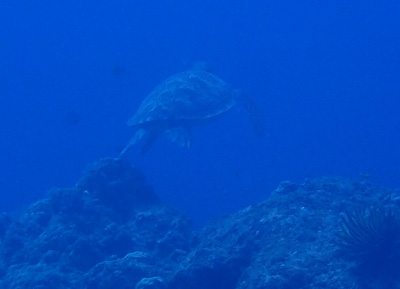 「タートルポイント」だけあってウミガメ発見。だけど泳ぐのが速くて近づけなかった。