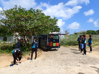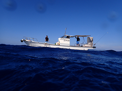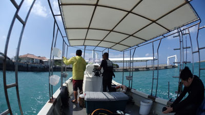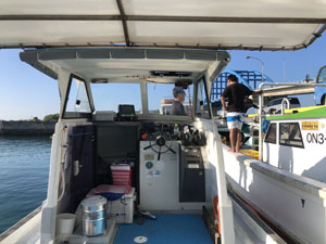 自分たちの機材を積み込んで出港だ。今日は天気が良いね〜。