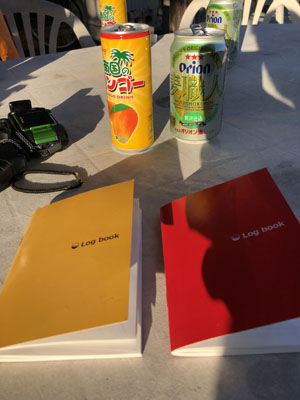 黒島での2日間合計6本のダイビングは楽しく終わった。ホント綺麗だったなぁ。ショップに戻ってログ付け。オリオンの発泡酒をご馳走になった。