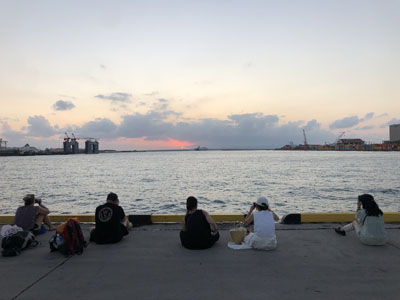ちょうど夕日が沈む時だったので、集まっていた人たちと一緒に夕日を眺める。