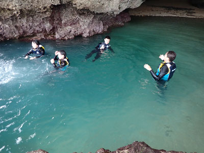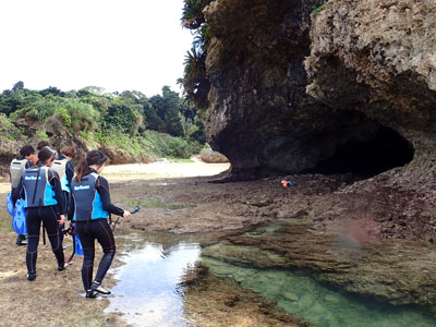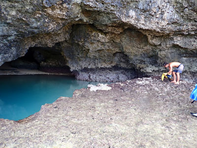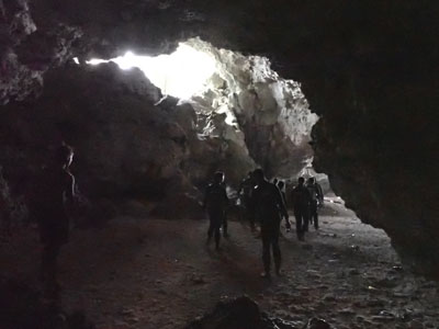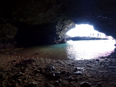 えー、ボクは閉所恐怖症的なところがあるので洞窟苦手。入り口の明るいところで待っていることにする。