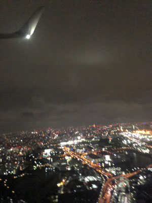 席に座ってもなかなか飛び立たず、22:50頃に離陸。結構時間がかかったな。